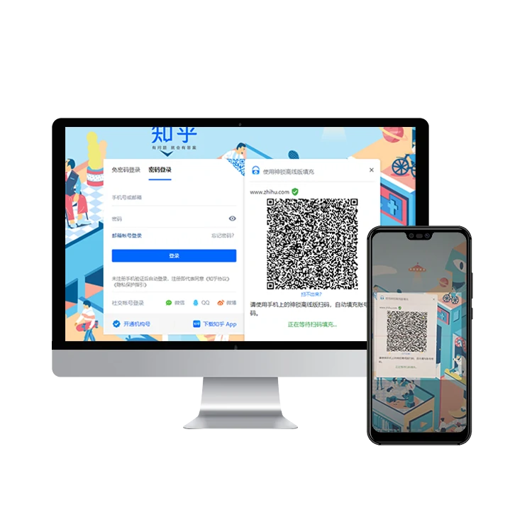 扫描电脑浏览器插件的二维码,自动填充密码